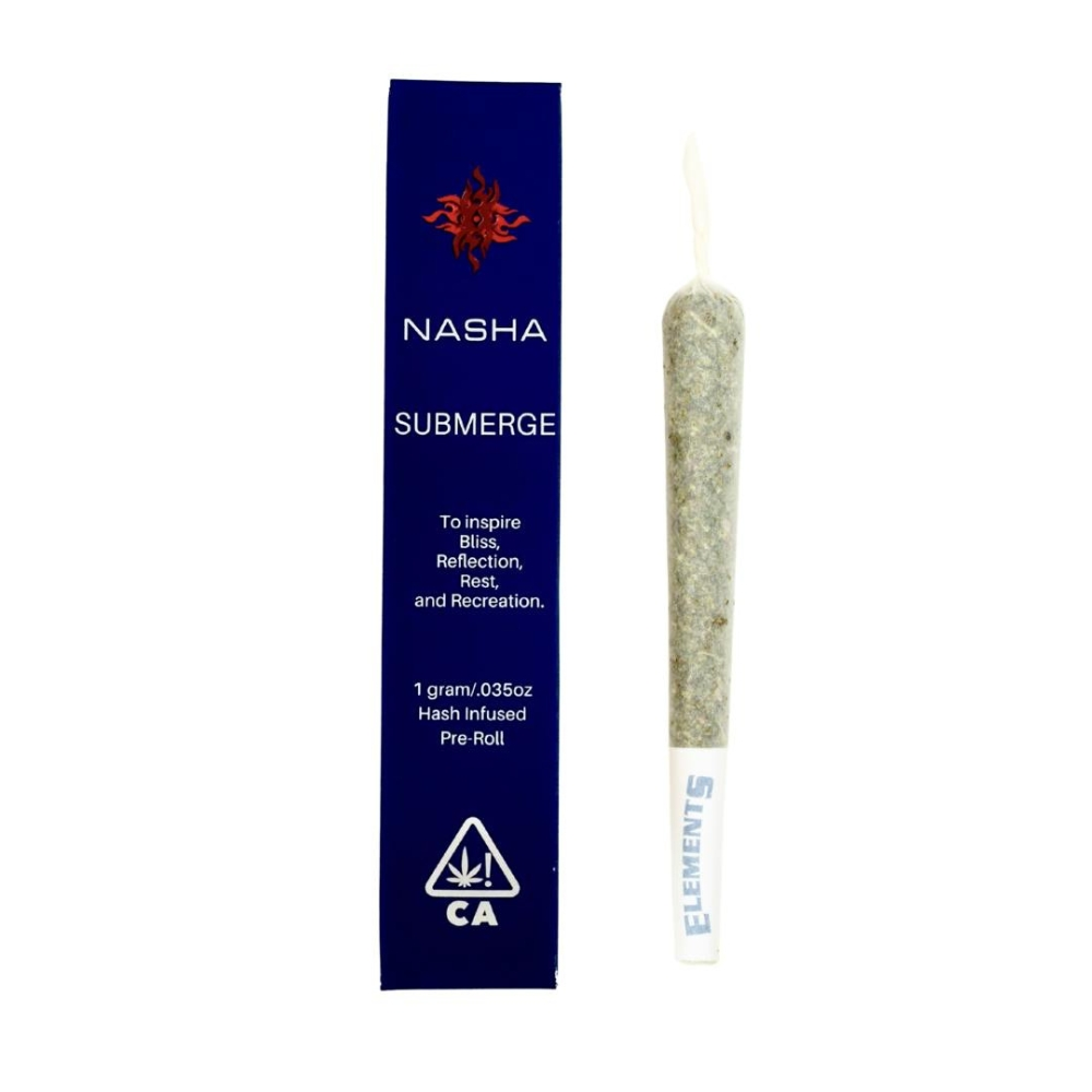 Nasha’s Submerge line pairs whole flower with in-house cold water hash sourced from Humboldt heritage farms. Focused on melt quality and terpene preservation, their infused pre-rolls highlight regenerative, sun-grown cultivation.